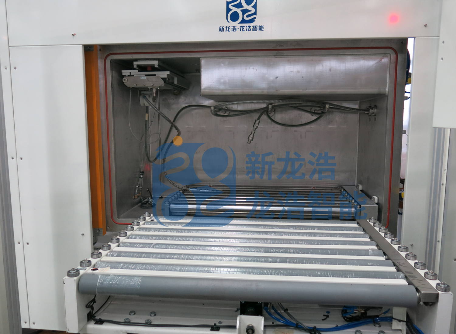1.箱内配备动力线体,箱外配动力平台及顶升平移机构,与客户现场的动力线体衔接,工件置于工件托盘上实现工件自动进出箱;